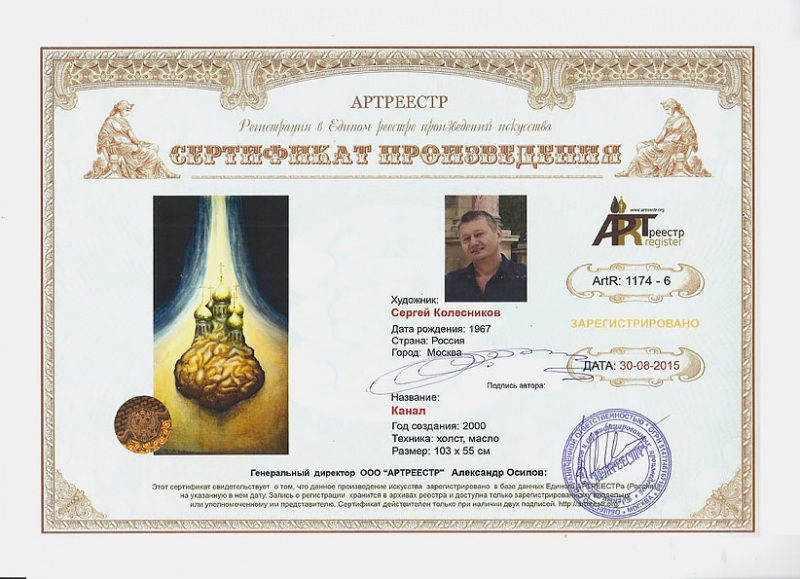 Online система регистрации арт-объектов artreestr / Сертификаты произведений членов «АРТ реестра» / Колесников Сергей Владимирович / Канал