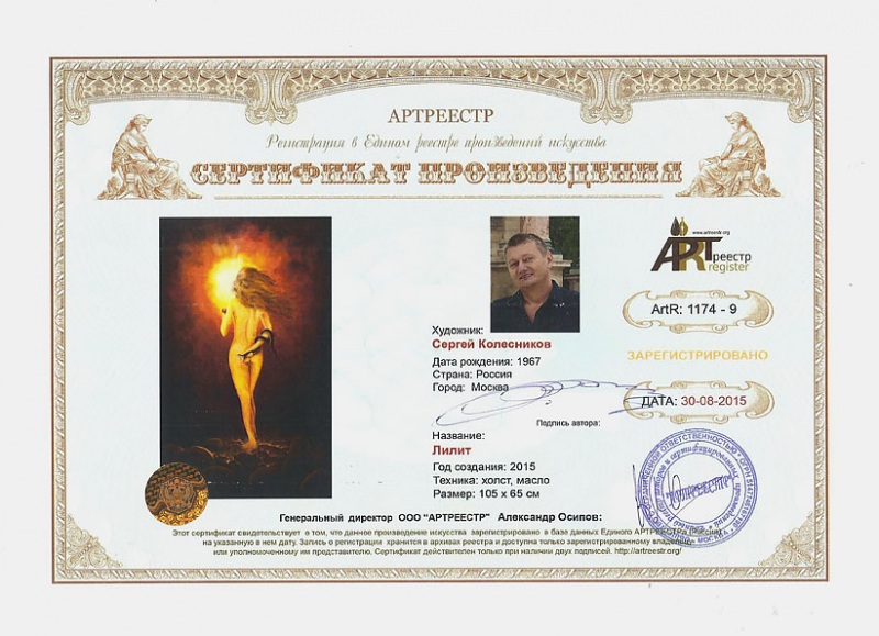 0 0 0 0 0   Online система регистрации арт-объектов artreestr / Сертификаты произведений членов «АРТ реестра» / Колесников Сергей Владимирович / Лилит