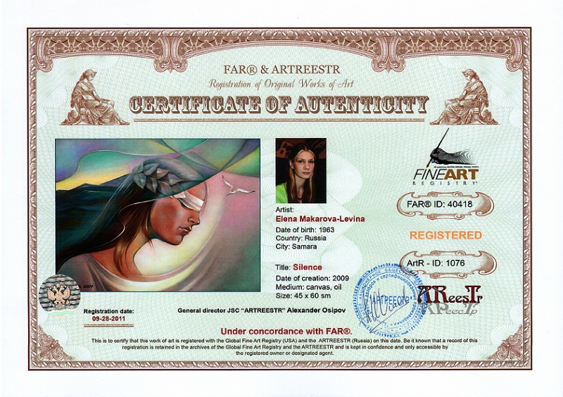 Online система регистрации арт-объектов artreestr / Сертификаты произведений членов «АРТ реестра» / Макарова-Левина Елена / Тишина