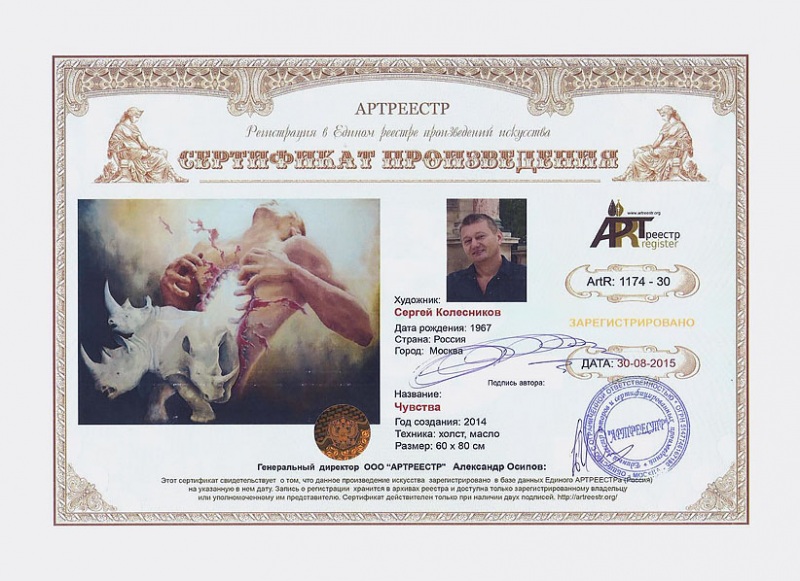 Online система регистрации арт-объектов artreestr / Сертификаты произведений членов «АРТ реестра» / Колесников Сергей Владимирович / Чувства