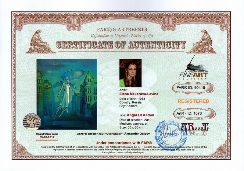 Online система регистрации арт-объектов artreestr / Сертификаты произведений членов «АРТ реестра» / Макарова-Левина Елена / Ангел дождя