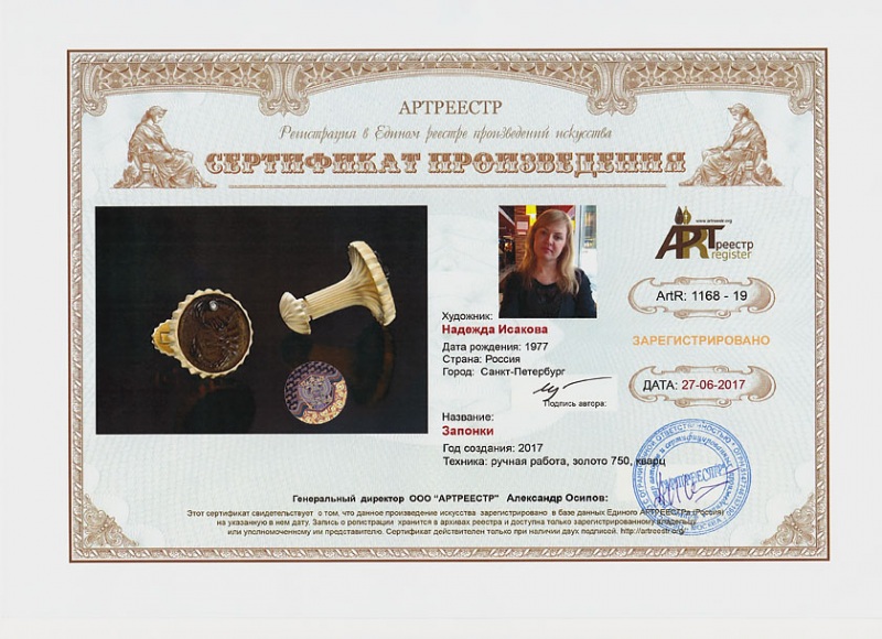 Online система регистрации арт-объектов artreestr / Сертификаты произведений членов «АРТ реестра» / Исакова Надежда Владимировна / Запонки