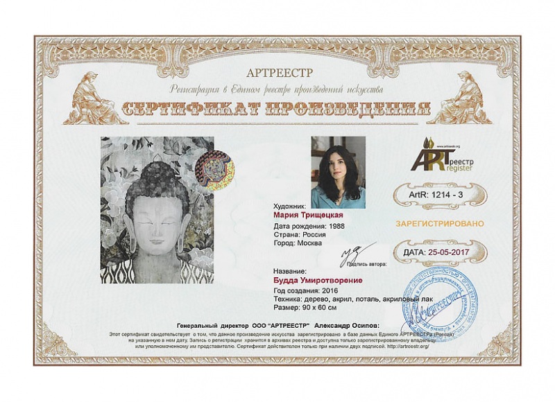 0 0 0 0 0   Online система регистрации арт-объектов artreestr / Сертификаты произведений членов «АРТ реестра» / Трищецкая Мария Юрьевна / Будда Умиротворение