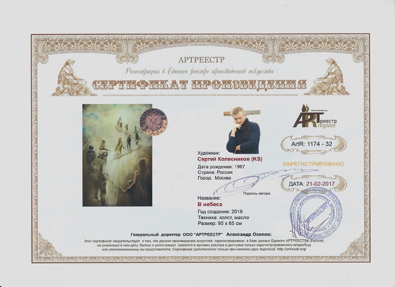 Online система регистрации арт-объектов artreestr / Сертификаты произведений членов «АРТ реестра» / Колесников Сергей Владимирович / В небеса