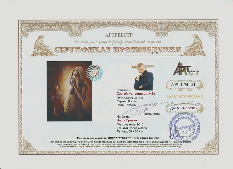 0 0 0 0 0   Online система регистрации арт-объектов artreestr / Сертификаты произведений членов «АРТ реестра» / Колесников Сергей Владимирович / Чаша Грааля