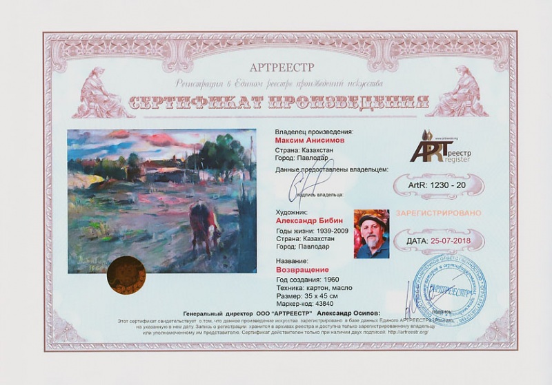 Online система регистрации арт-объектов artreestr / Сертификаты произведений членов «АРТ реестра» / Анисимов Максим Анатольевич / Возвращение