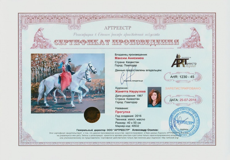 0 0 0 0 0   Online система регистрации арт-объектов artreestr / Сертификаты произведений членов «АРТ реестра» / Анисимов Максим Анатольевич / Прогулка