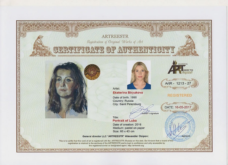 Online система регистрации арт-объектов artreestr / Сертификаты произведений членов «АРТ реестра» / Бирюкова Екатерина Дмитриевна /