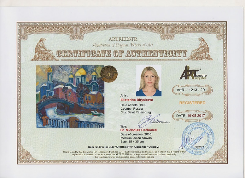 Online система регистрации арт-объектов artreestr / Сертификаты произведений членов «АРТ реестра» / Бирюкова Екатерина Дмитриевна /