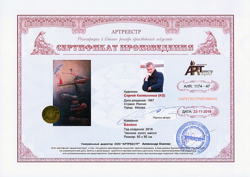 0 0 0 0 0   Online система регистрации арт-объектов artreestr / Сертификаты произведений членов «АРТ реестра» / Колесников Сергей Владимирович / Баланс