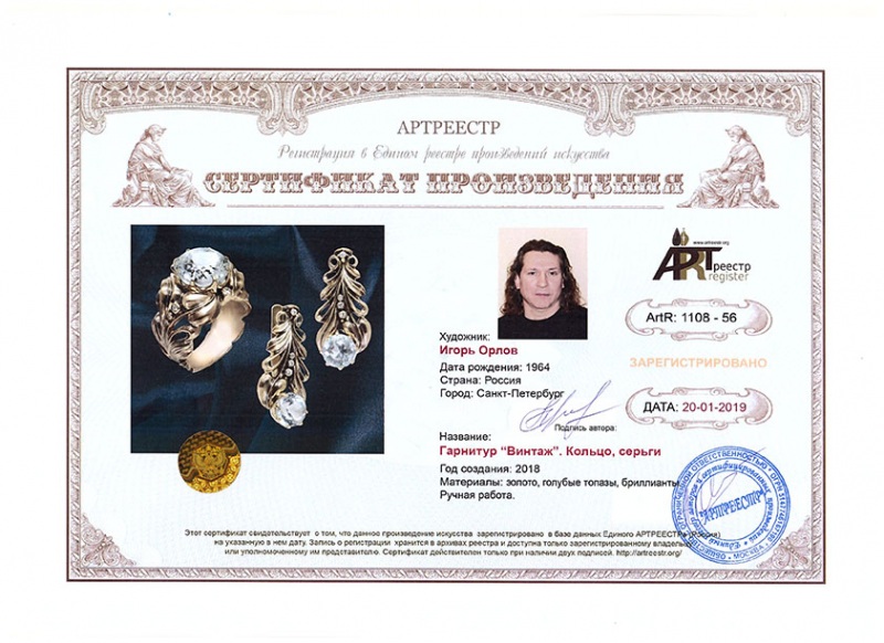 "Единый реестр авторов и сертифицированных произведений искусства"