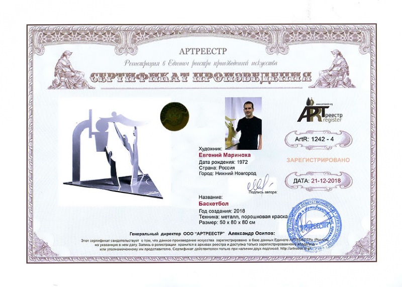 Online система регистрации арт-объектов artreestr / Сертификаты произведений членов «АРТ реестра» / MAR.E (Евгений Мариноха) / Баскетбол