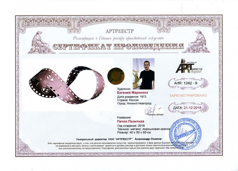 Online система регистрации арт-объектов artreestr / Сертификаты произведений членов «АРТ реестра» / MAR.E (Евгений Мариноха) / Петля Позитива