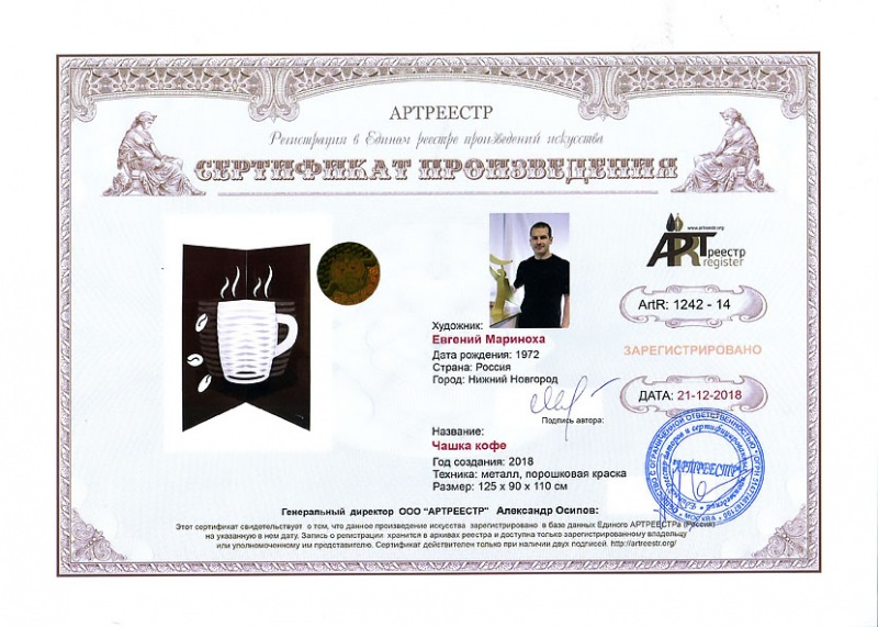 0 0 0 0 0   Online система регистрации арт-объектов artreestr / Сертификаты произведений членов «АРТ реестра» / MAR.E (Евгений Мариноха) / Чашка кофе