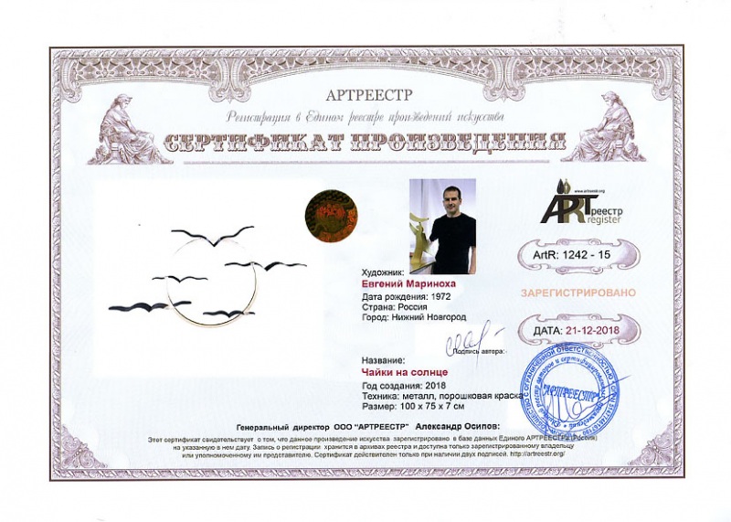 0 0 0 0 0   Online система регистрации арт-объектов artreestr / Сертификаты произведений членов «АРТ реестра» / MAR.E (Евгений Мариноха) / Чайки на солнце