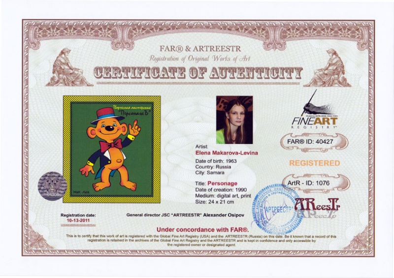 Online система регистрации арт-объектов artreestr / Сертификаты произведений членов «АРТ реестра» / Макарова-Левина Елена / Персонаж