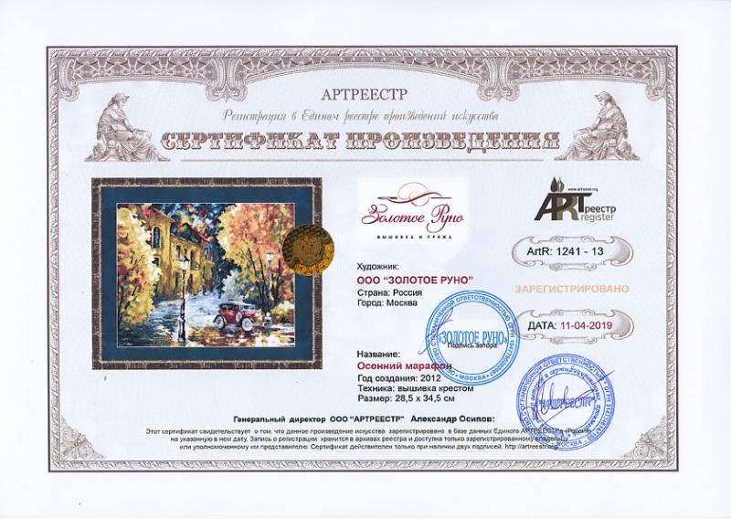 0 0 0 0 0   Online система регистрации арт-объектов artreestr / Сертификаты произведений членов «АРТ реестра» / ООО "ЗОЛОТОЕ РУНО" / Осенний марафон