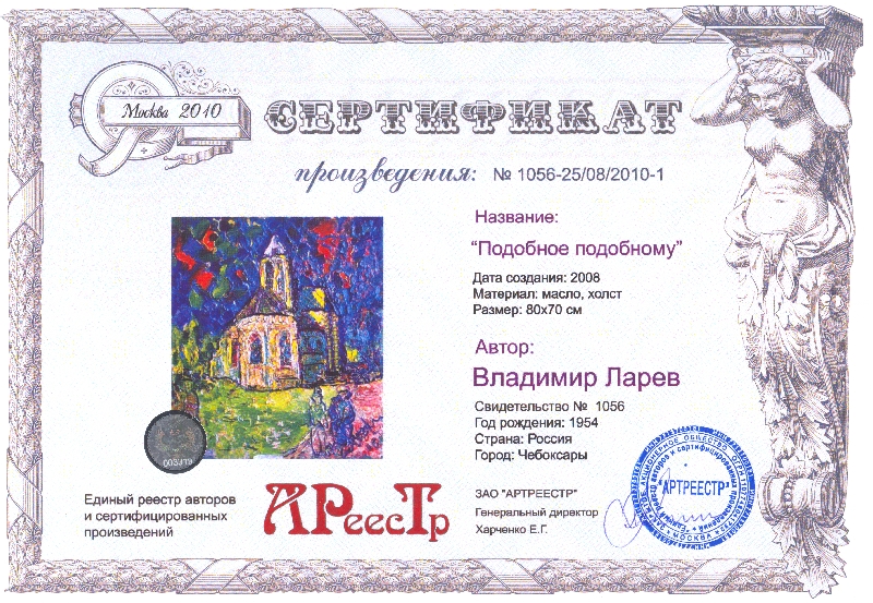 Online система регистрации арт-объектов artreestr / Сертификаты произведений членов «АРТ реестра» / Ларев Владимир Алексеевич / Подобное подобного