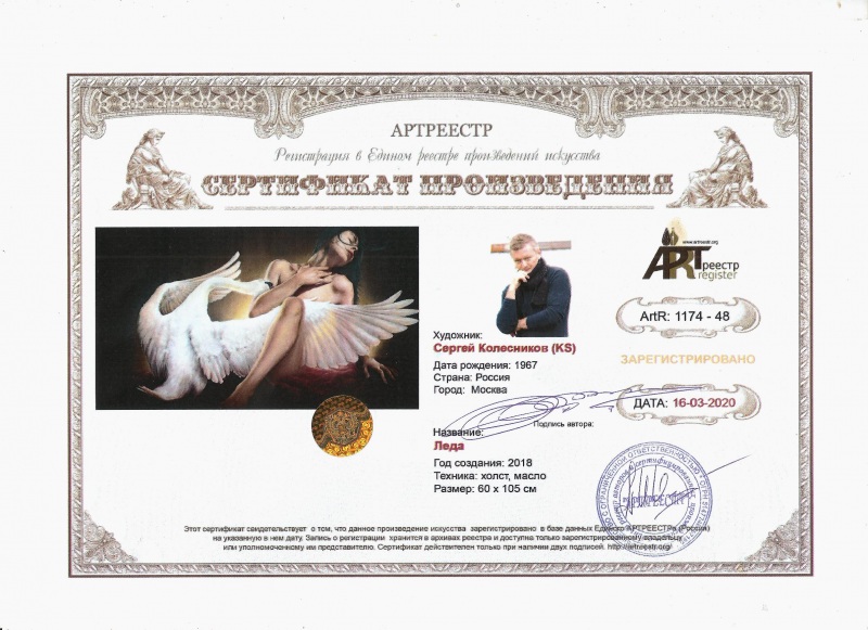 Online система регистрации арт-объектов artreestr / Сертификаты произведений членов «АРТ реестра» / Колесников Сергей Владимирович / Леда