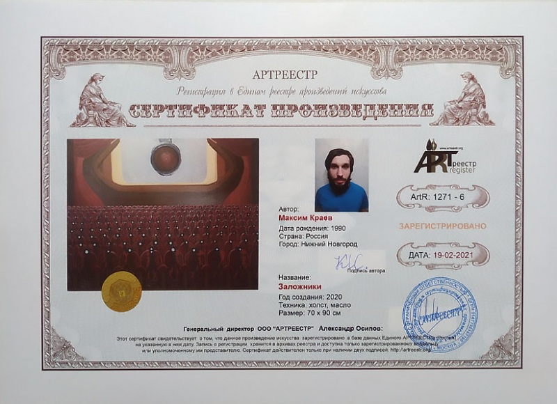 Online система регистрации арт-объектов artreestr / Сертификаты произведений членов «АРТ реестра» / Краев Максим Сергеевич / Заложники