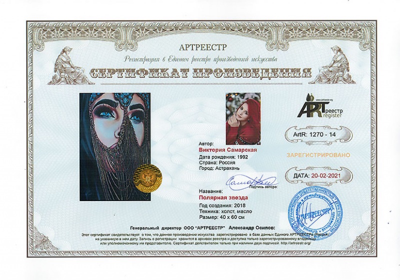 Online система регистрации арт-объектов artreestr / Сертификаты произведений членов «АРТ реестра» / Самарская Виктория Валерьевна / Полярная звезда