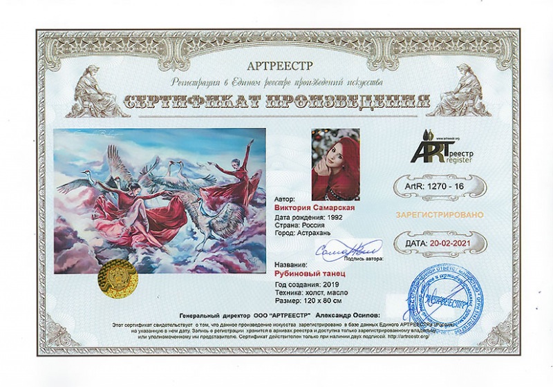 0 0 0 0 0   Online система регистрации арт-объектов artreestr / Сертификаты произведений членов «АРТ реестра» / Самарская Виктория Валерьевна / Рубиновый танец