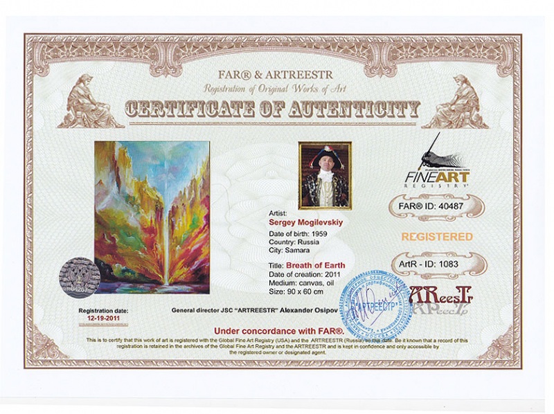 Online система регистрации арт-объектов artreestr / Сертификаты произведений членов «АРТ реестра» / Могилевский Сергей Яковлевич / Дыхание Земли
