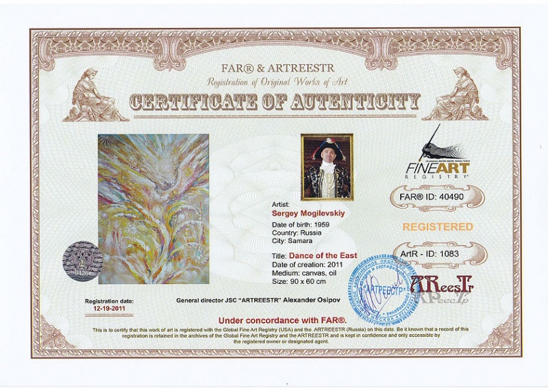 Online система регистрации арт-объектов artreestr / Сертификаты произведений членов «АРТ реестра» / Могилевский Сергей Яковлевич / Танец Востока