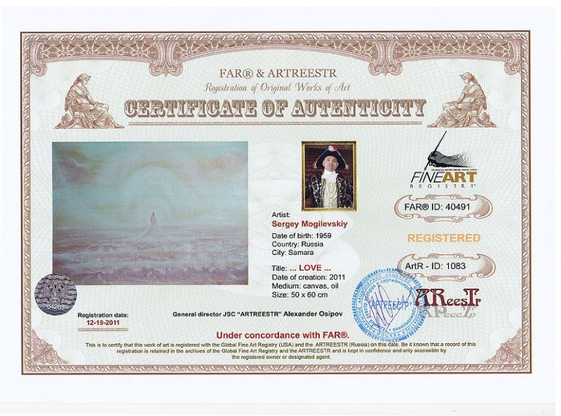 Online система регистрации арт-объектов artreestr / Сертификаты произведений членов «АРТ реестра» / Могилевский Сергей Яковлевич / Любовь