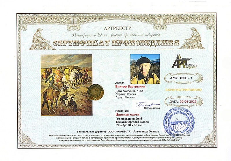 0 0 0 0 0   Online система регистрации арт-объектов artreestr / Сертификаты произведений членов «АРТ реестра» / Бастрыкин Виктор Васильевич / Царская охота