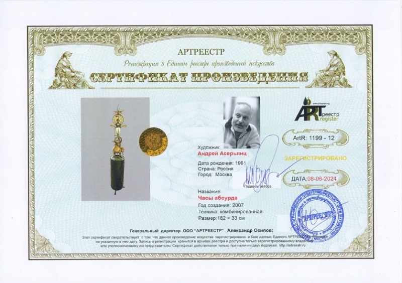 Online система регистрации арт-объектов artreestr / Сертификаты произведений членов «АРТ реестра» / Асерьянц Андрей Викторович / Часы абсурда