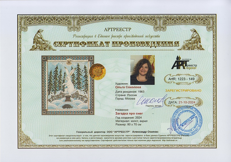 Online система регистрации арт-объектов artreestr / Сертификаты произведений членов «АРТ реестра» / Соколова Ольга Львовна / Загадка про снег
