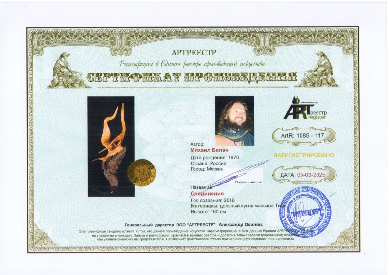 Online система регистрации арт-объектов artreestr / Сертификаты произведений членов «АРТ реестра» / Балан Михаил Александрович / Соединение