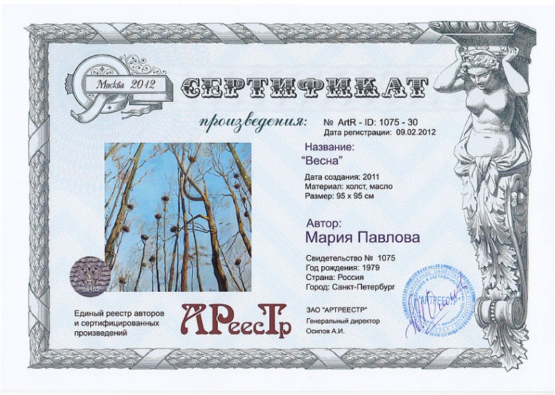 Online система регистрации арт-объектов artreestr / Сертификаты произведений членов «АРТ реестра» / Павлова Мария Станиславовна / Весна