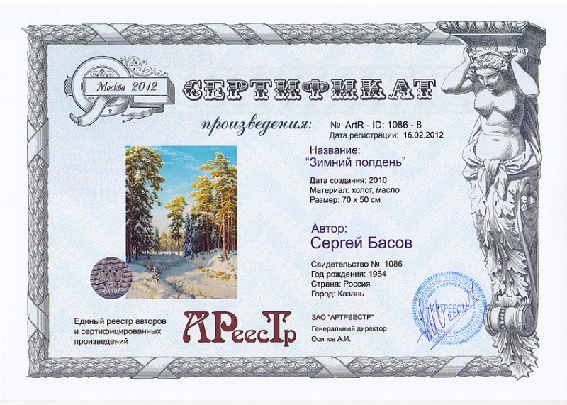Online система регистрации арт-объектов artreestr / Сертификаты произведений членов «АРТ реестра» / Басов Сергей Геннадьевич / Зимний полдень