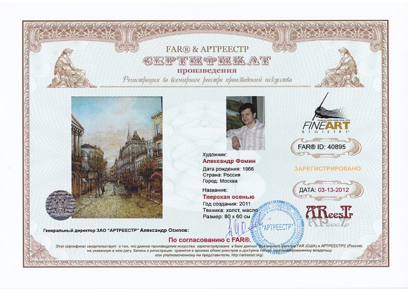 Online система регистрации арт-объектов artreestr / Сертификаты произведений членов «АРТ реестра» / Фомин Александр Викторович / Тверская осенью