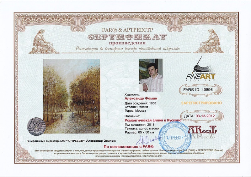 Online система регистрации арт-объектов artreestr / Сертификаты произведений членов «АРТ реестра» / Фомин Александр Викторович / Романтическая аллея в Кусково