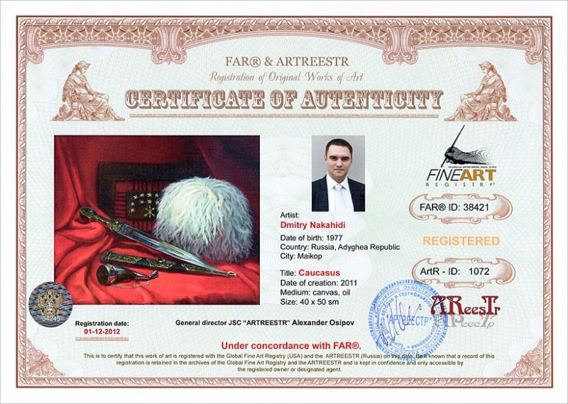 Online система регистрации арт-объектов artreestr / Сертификаты произведений членов «АРТ реестра» / Накахиди Дмитрий Александрович / Кавказ
