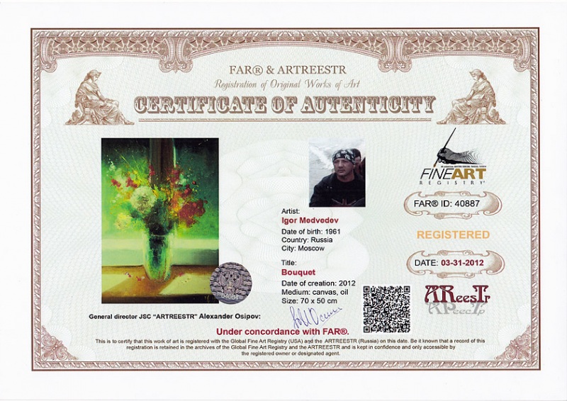 Online система регистрации арт-объектов artreestr / Сертификаты произведений членов «АРТ реестра» / Медведев Игорь Витальевич / Букет