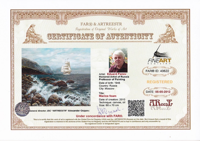 Online система регистрации арт-объектов artreestr / Сертификаты произведений членов «АРТ реестра» / Панов Эдуард Парфирьевич / Морская пена