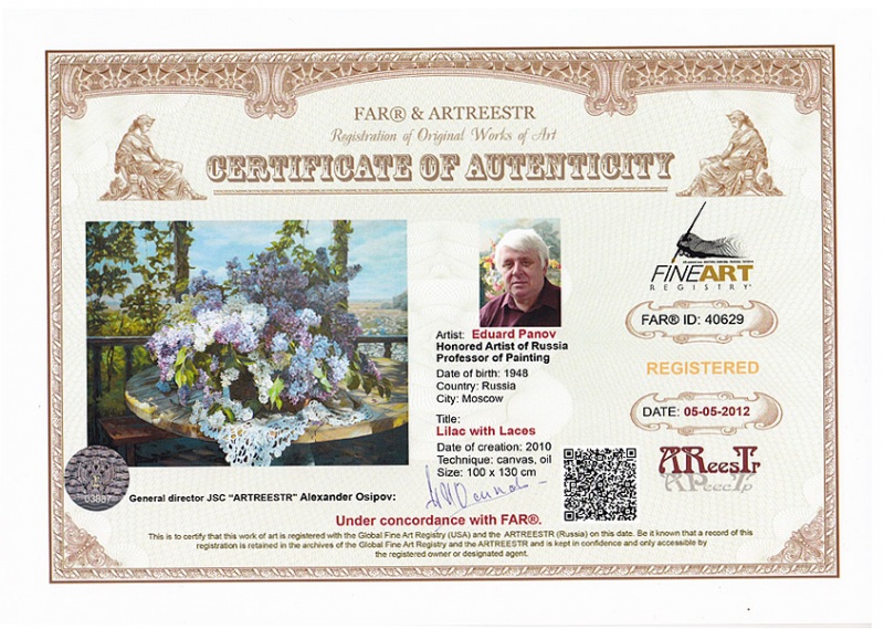 Online система регистрации арт-объектов artreestr / Сертификаты произведений членов «АРТ реестра» / Панов Эдуард Парфирьевич / Сирень с кружевами