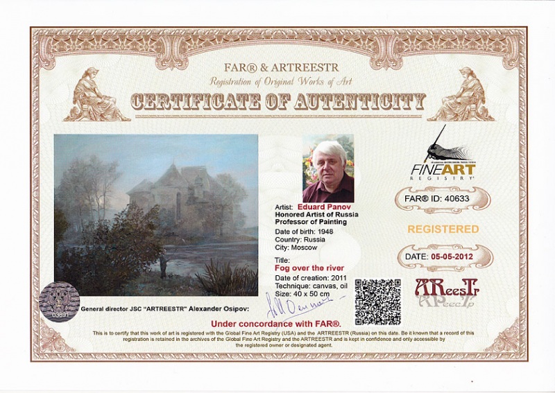 Online система регистрации арт-объектов artreestr / Сертификаты произведений членов «АРТ реестра» / Панов Эдуард Парфирьевич / Туман над рекой