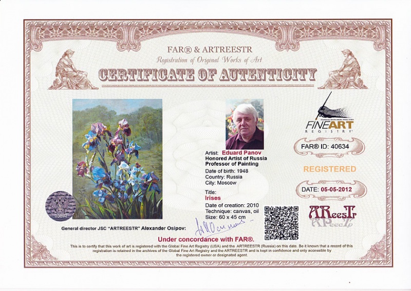 Online система регистрации арт-объектов artreestr / Сертификаты произведений членов «АРТ реестра» / Панов Эдуард Парфирьевич / Ирисы