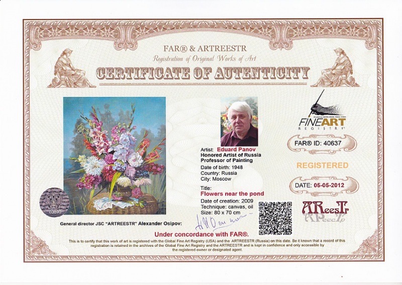 Online система регистрации арт-объектов artreestr / Сертификаты произведений членов «АРТ реестра» / Панов Эдуард Парфирьевич / Цветы у пруда