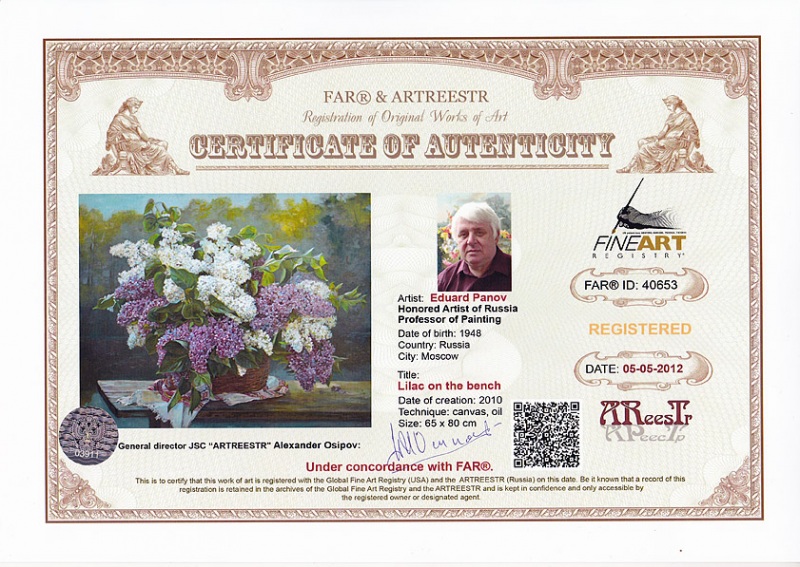 0 0 0 0 0   Online система регистрации арт-объектов artreestr / Сертификаты произведений членов «АРТ реестра» / Панов Эдуард Парфирьевич / Сирень на лавке