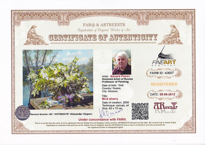 Online система регистрации арт-объектов artreestr / Сертификаты произведений членов «АРТ реестра» / Панов Эдуард Парфирьевич / Черемуха