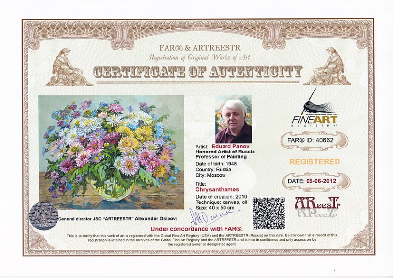 Online система регистрации арт-объектов artreestr / Сертификаты произведений членов «АРТ реестра» / Панов Эдуард Парфирьевич / Хризантемы