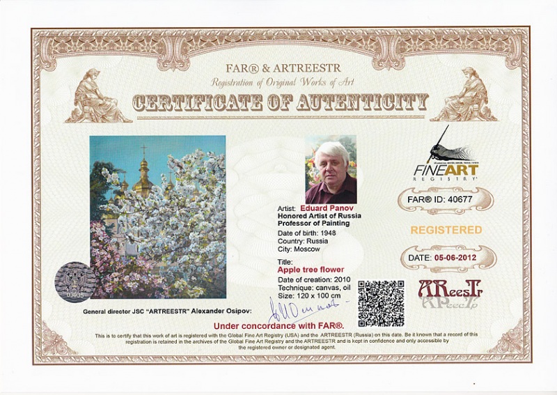 Online система регистрации арт-объектов artreestr / Сертификаты произведений членов «АРТ реестра» / Панов Эдуард Парфирьевич / Яблони цветут
