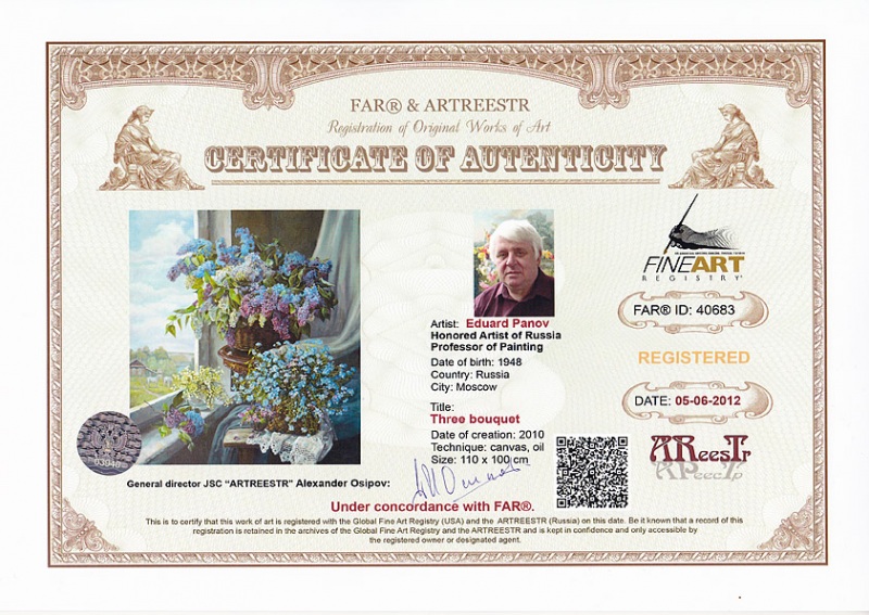 Online система регистрации арт-объектов artreestr / Сертификаты произведений членов «АРТ реестра» / Панов Эдуард Парфирьевич / Три букета