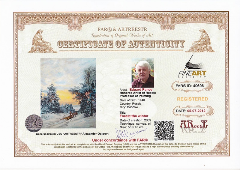 Online система регистрации арт-объектов artreestr / Сертификаты произведений членов «АРТ реестра» / Панов Эдуард Парфирьевич / Лес зимой